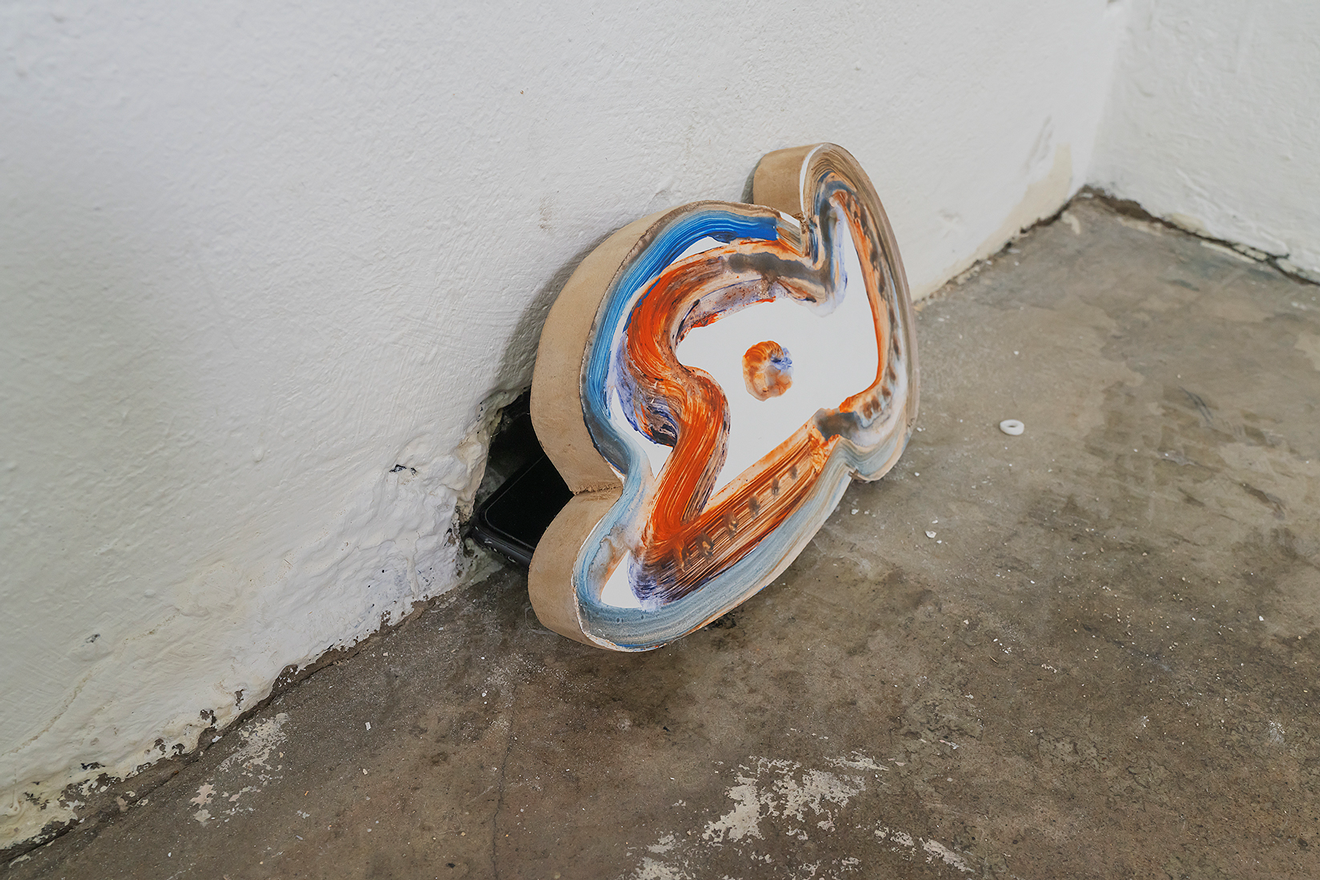A Piece of Blowing up 7, 8, 2022, spray paint and wooden panel, variable size
